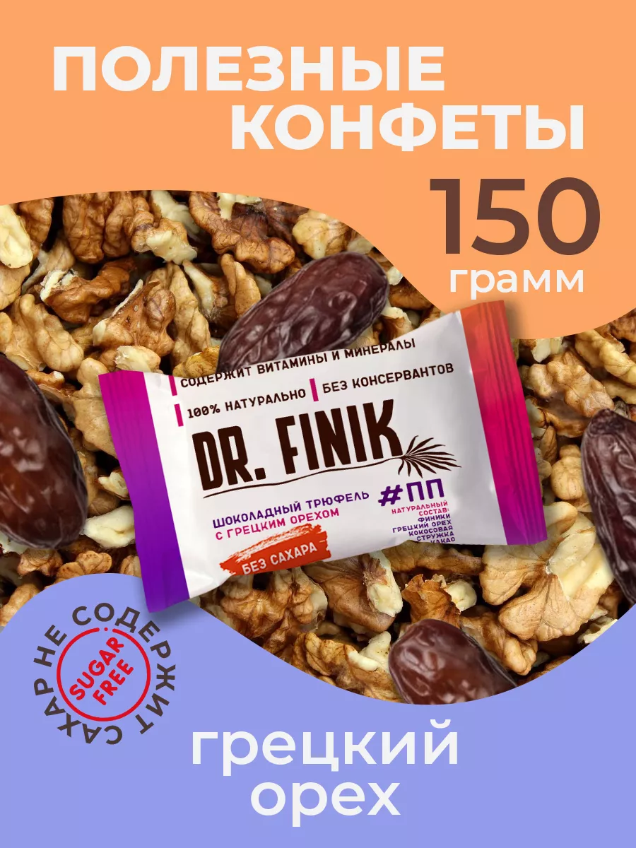 Финиковые конфеты с грецким орехом 150г без сахара