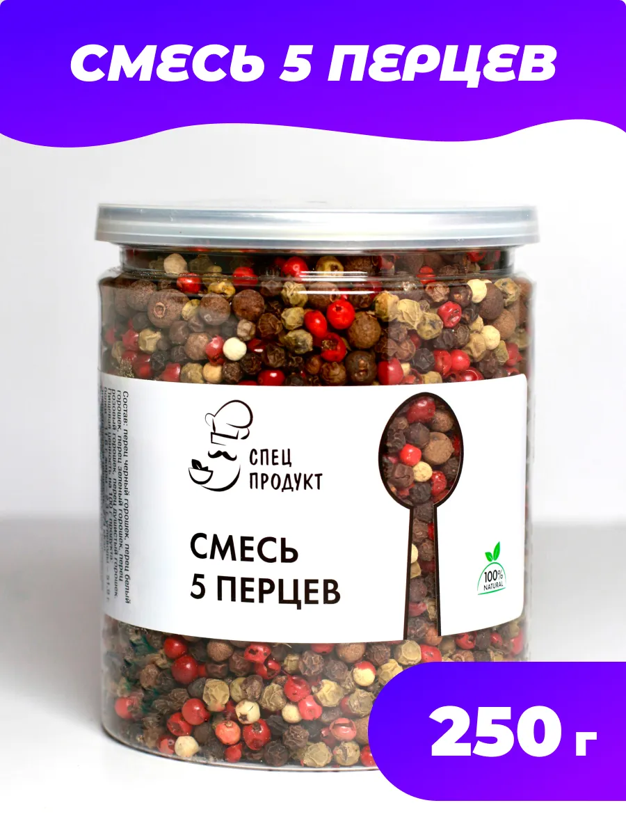 ![]() | Смесь 5 перцев горошком 250г /smes-5-pertsev-250g | Специи и пряности | 524 ₽1 300 ₽ | В наличии | ||